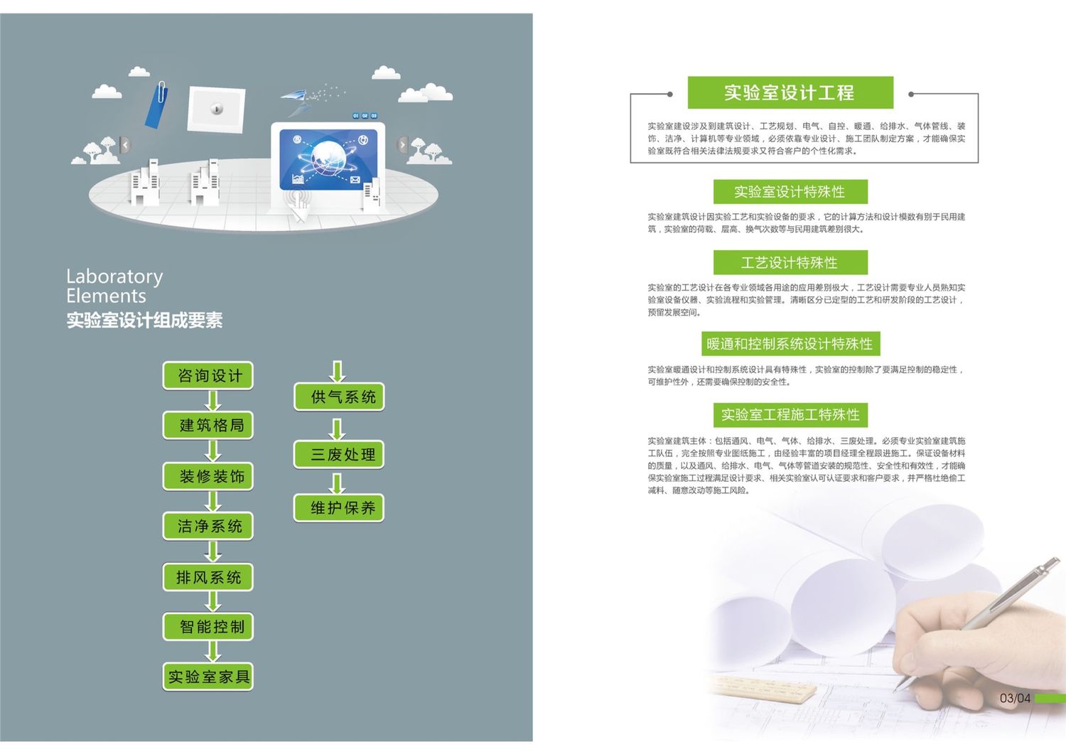 專注從事實驗室整體規劃、設計、生產、安裝(實驗室裝修、潔凈室規劃設計與施工、微生物室)等一體化。為國內諸多科研院所、工礦企業、醫療單位、學校及環保、檢測等部門提供了完善的整體化服務,贏得了廣大用戶的信賴。本司致力于實驗室設備的設計與生產,吸收國內外同行先進技術和工藝,使產品不斷推陳出新,開發的多種規格的實驗室配套設施、實驗室廢氣處理、實驗室放水處理可滿足不同客戶的需求。
